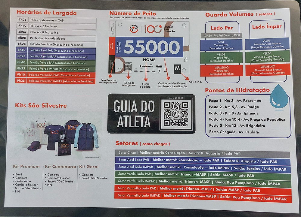 Como noticiado pelo Esportividade em 13/12, haverá uma separação: uma parte dos corredores largará do lado “par” da avenida Paulista; outra parte, do “ímpar”. A imagem acima – clique nela a fim de ampliá-la – contém informações resumidas sobre acessos aos setores e horários estimados de largada.