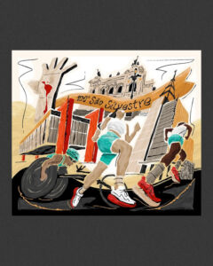 Ilustração que estampará sacolas da 100ª edição da São Silvestre em 2025 (Divulgação/Instagram Climacio Charille)