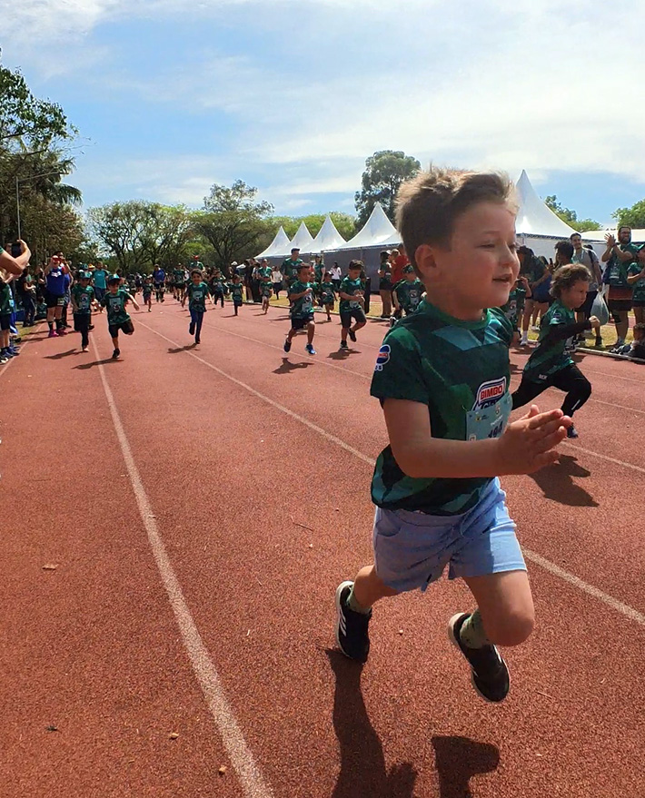 Ainda pela manhã, foi a vez das baterias kids, realizadas na pista de atletismo do CepeUSP, com percursos adequados para cada faixa etária: 50 metros (3 e 4 anos), 100 metros (5 e 6 anos), 200 metros (7 e 8 anos), 400 metros (9 e 10 anos), 600 metros (11 e 12 anos) e 800 metros (13 a 15 anos). Para completar a diversão, a “arena” contou com uma área infantil, com pula-pula inflável e espaço de pintura.