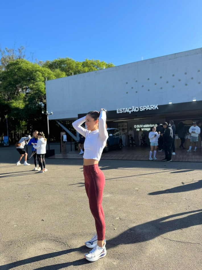 Marcella Cassemiro em aula na Estação Spark, da Chevrolet, no parque do Ibirapuera (Divulgação/Marcella Cassemiro)