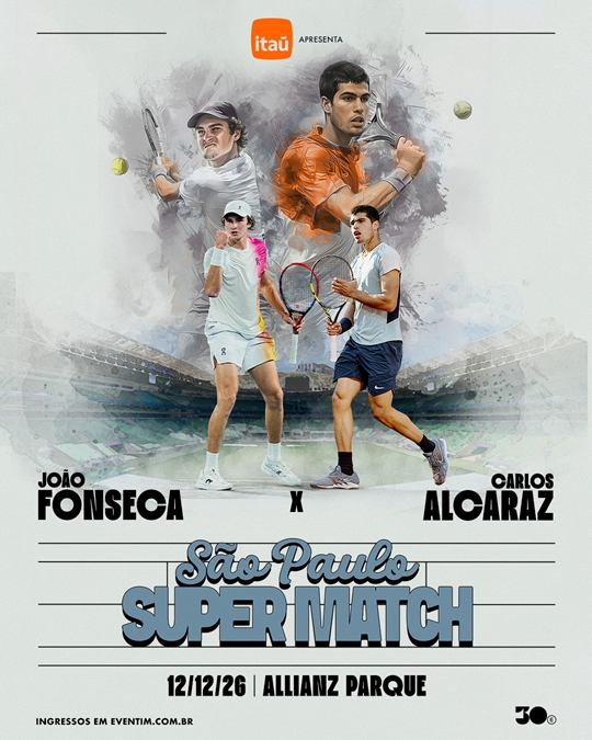 Os tenistas Carlos Alcaraz e João Fonseca jogam em São Paulo, mais precisamente no Allianz Parque, na zona oeste da capital paulista, em 12 de dezembro de 2026, quando disputam jogo amistoso intitulado São Paulo Super Match. O evento de tênis é realizado pela 30e e apresentado pelo Itaú. Veja abaixo informações a respeito da venda de ingressos.