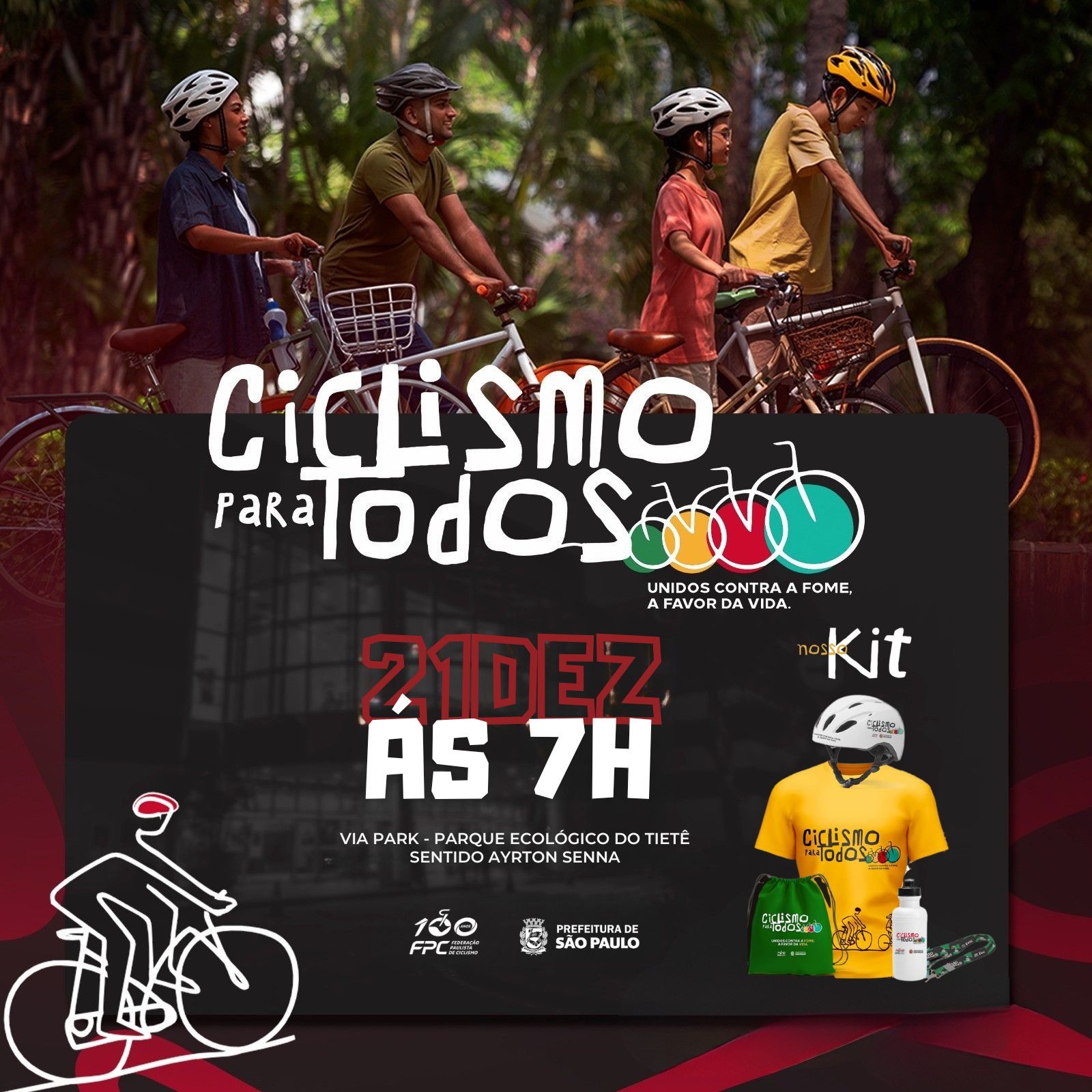 Um passeio ciclístico de 6 km com inscrições gratuitas, Ciclismo para Todos, acontece às 7h de 21 de dezembro de 2025, domingo, na Via Parque, entre a rodovia Ayrton Senna, no sentido São Paulo, e o Parque Ecológico do Tietê, na zona leste. A Federação Paulista de Ciclismo organiza o evento.
