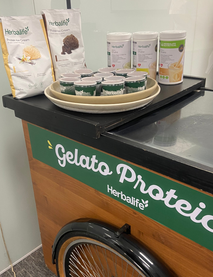 Durante o evento de lançamento, no dia 3 de dezembro de 2025, quarta-feira, na sede da Herbalife Brasil, em São Paulo, os participantes degustaram em primeira mão os gelatos de baunilha e chocolate e, ainda, uma terceira opção feita com os pós do Protein Ice Cream de baunilha e o shake proteico de tortinha de limão.