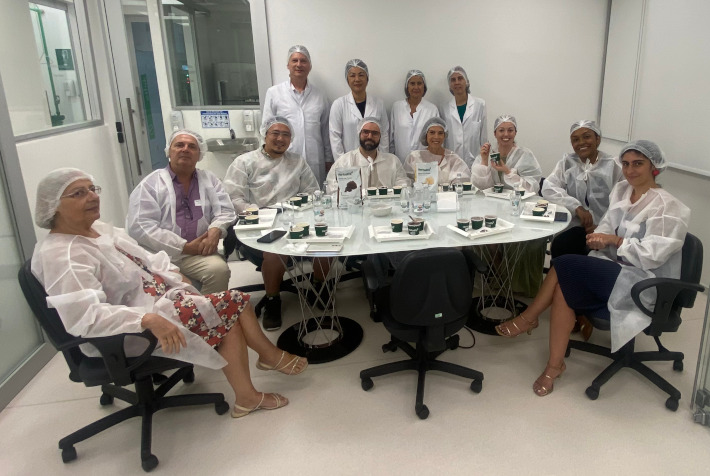 Ainda houve um tour pela cozinha da sede, onde são preparadas e testadas, em escalada não industrial, novas receitas.