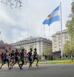 Com Casa Rosada e praça de Maio ao fundo, atletas correm na Maratona de Buenos Aires (Esportividade)