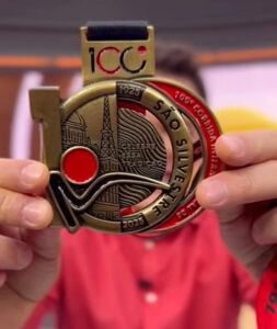 Alessandro Jodar segura medalha da 100ª Corrida Internacional de São Silvestre (TV Globo/Reprodução)