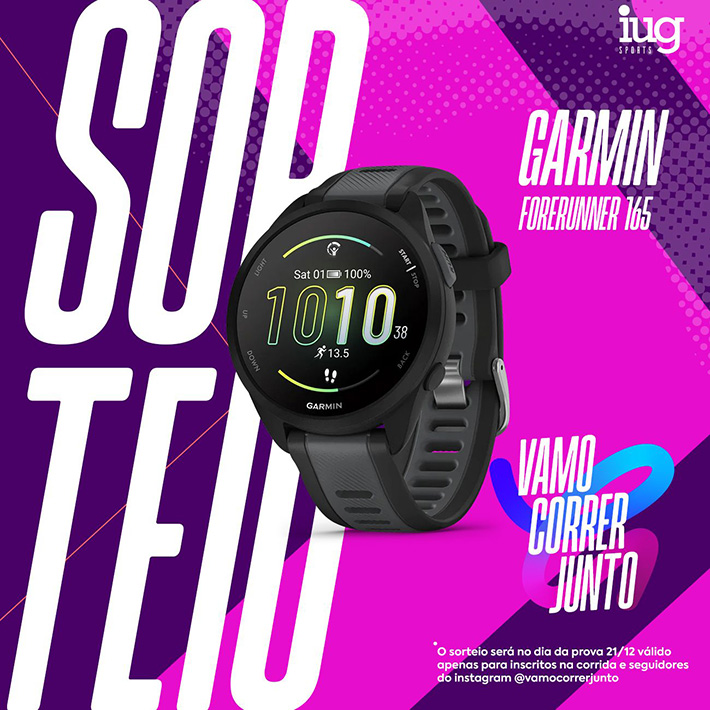 Dezembro é o mês dos presentes, mas você costuma se presentear? Você terá a chance de voltar para casa, depois de participar da Vamo Correr Junto, com muito mais que uma medalha: com um smartwatch da Garmin. Os participantes do evento, organizado pela Iug Sports, concorrerão no dia 21 de dezembro de 2025, após a chegada dos 6 km, a um Garmin Forerunner 165 em São Bernardo do Campo. Será necessário, além de estar inscrito na prova, seguir o perfil @vamocorrerjunto no Instagram.