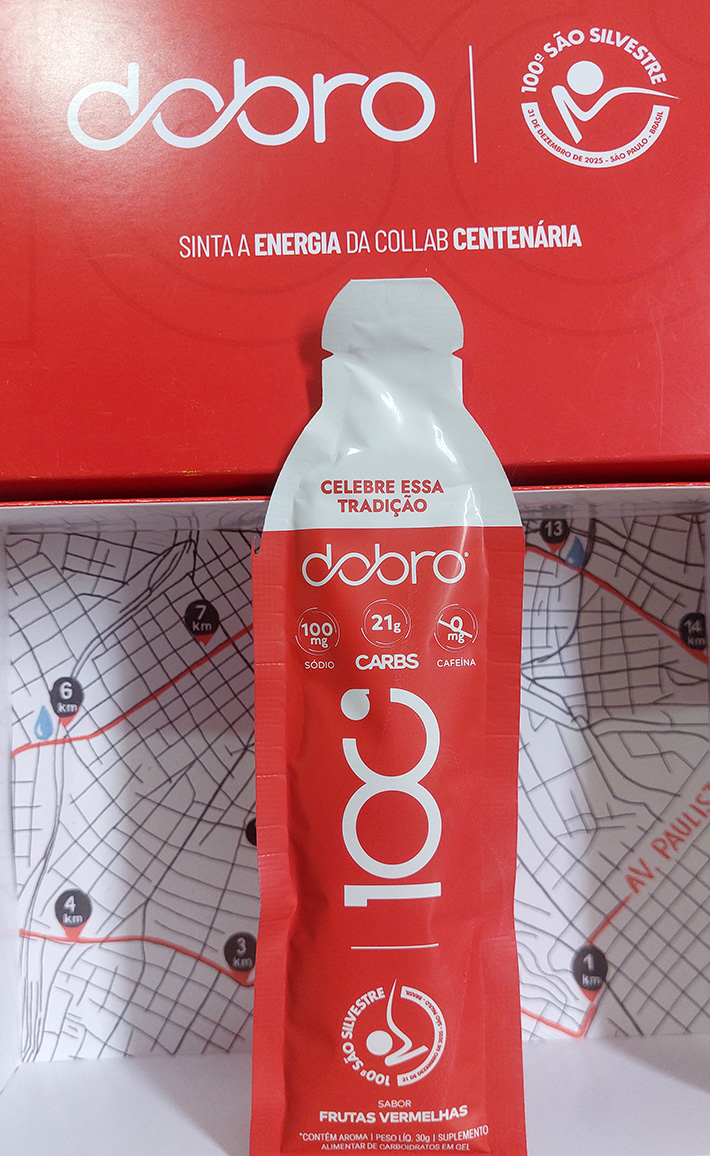 A Dobro apresentou neste fim de novembro de 2025 os géis de carboidrato de sabor “frutas vermelhas” com embalagem especial. O logotipo da 100ª São Silvestre e o slogan “Celebre essa tradição” são destacados nela. Caixa com dez unidades, cada uma delas com 21 gramas de carboidrato, está à venda por R$ 129,90. A empresa já havia feito “collab” similar por ocasião da Nike São Paulo Run, evento que aconteceu em julho de 2024.