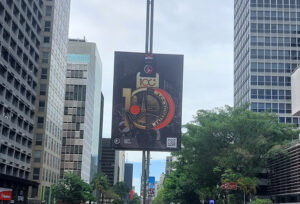 Medalha da 100ª edição da Corrida de São Silvestre em banner na avenida Paulista (Esportividade)